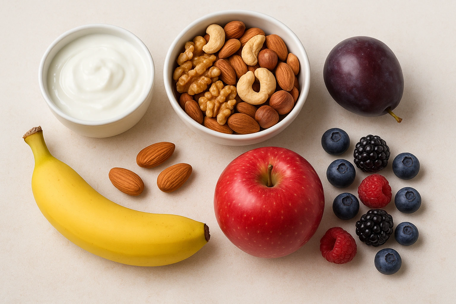 Trái cây (chuối, mận, táo, các loại quả mọng): Giàu chất xơ, vitamin và khoáng chất, ít hoặc không chứa chất béo, khả năng làm đầy dạ dày nhanh chóng với lượng calo tương đối ít.