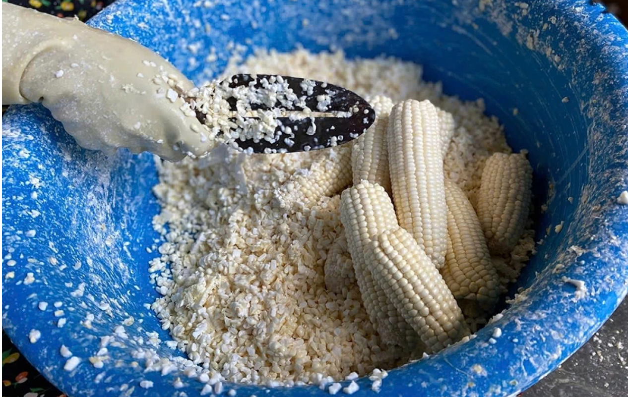 Người K’Ho hiện nay thường sử dụng giống bắp nếp trắng để làm bánh. Giống bắp này dẻo, ngon, năng suất cao hơn và thời gian thu hoạch sớm hơn so với giống bắp nghệ. Theo kinh nghiệm của bà con, những trái bắp đã đủ ngày thì tranh thủ bẻ vào buổi sớm mai để đạt độ ngon nhất. Trái bắp sau khi hái về được chế biến ngay để giữ trọn vị thơm ngon. Vỏ bắp cũng được tận dụng để gói bánh.