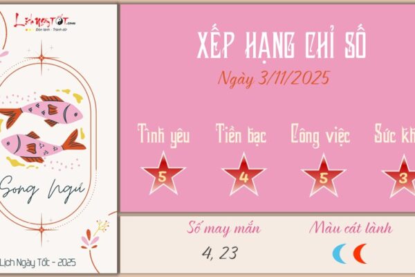 Tử vi hôm nay của Bạch Dương (21/3 – 19/4) Theo tử vi hàng ngày, Bạch Dương hôm nay (5/11/2025) sẽ khá yên bình và dễ chịu. Mọi việc diễn ra đúng như mong muốn, nằm trong tầm kiểm soát. Cung hoàng đạo này có thể tận hưởng trọn vẹn những điều tích cực và dành…