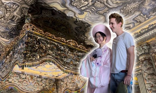 Trưng bày “Hình tượng rồng trên bia tiến sĩ” thu hút sự quan tâm của nhiều du khách, đặc biệt là du khách Tây. Nguồn: Báo Lao Động