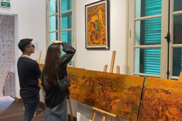 Triển lãm “Mạch di sản” tại biệt thự Pháp cổ thu hút người yêu văn hóa Việt Nam, với hơn 60 tác phẩm đề tài tranh dân gian Hàng Trống – Đông Hồ – Kim Hoàng. Nguồn: Báo Lao Động