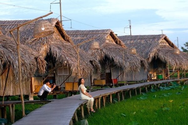 Đồng Tháp – Tại khu du lịch sinh thái ở TP Cao Lãnh, nhiều người thích thú vì nhân viên phục vụ vừa bê mâm cơm lớn vừa đạp xe trên cánh đồng lúa. Cre: Báo Lao Động