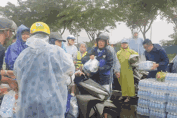 Khánh Hòa – Hàng chục chuyến xe chở nhu yếu phẩm đến các điểm ngập lụt nặng để tiếp tế cho người dân. Nguồn: Báo Lao Động