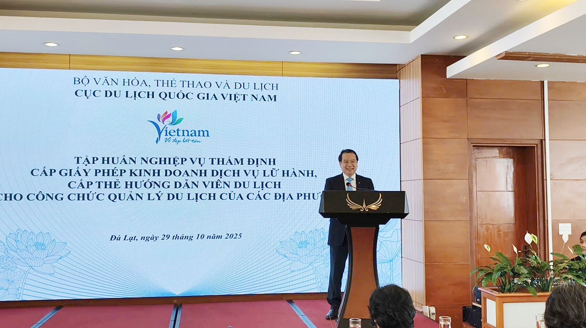 Sáng ngày 29/10, tại Đà Lạt (Lâm Đồng), Cục Du lịch Quốc gia Việt Nam khai mạc Lớp tập huấn nghiệp vụ thẩm định cấp giấy phép kinh doanh dịch vụ lữ hành và cấp thẻ hướng dẫn viên du lịch dành cho các công chức quản lý du lịch của các địa phương.