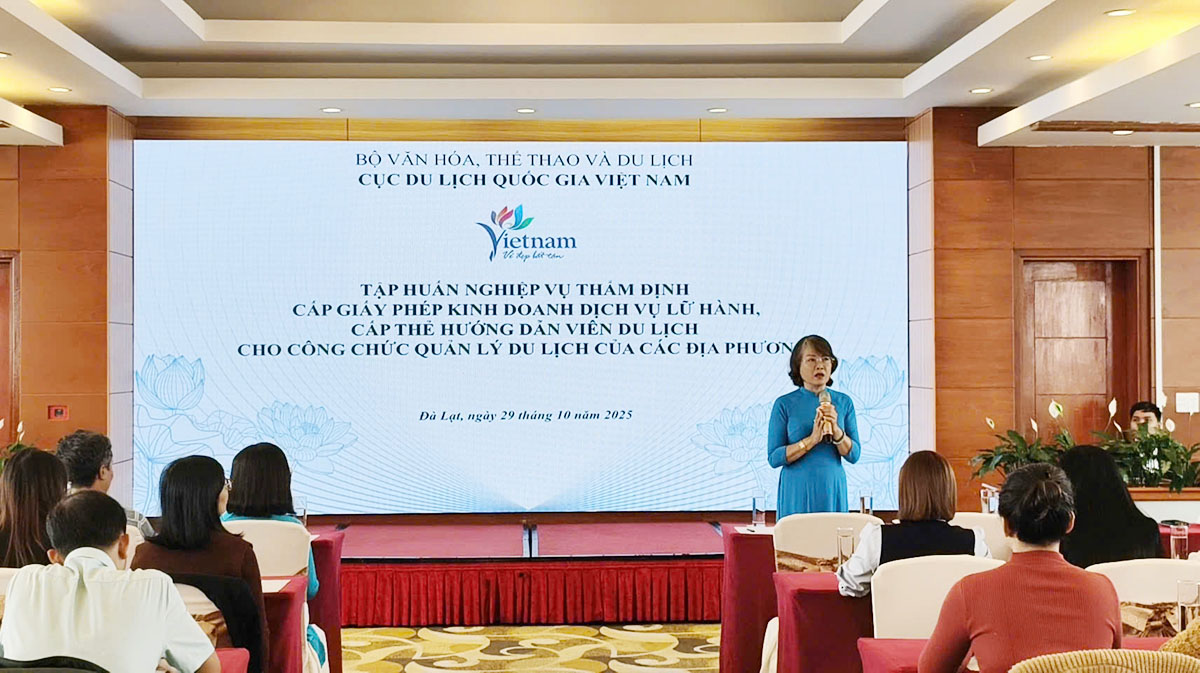Sáng ngày 29/10, tại Đà Lạt (Lâm Đồng), Cục Du lịch Quốc gia Việt Nam khai mạc Lớp tập huấn nghiệp vụ thẩm định cấp giấy phép kinh doanh dịch vụ lữ hành và cấp thẻ hướng dẫn viên du lịch dành cho các công chức quản lý du lịch của các địa phương.
