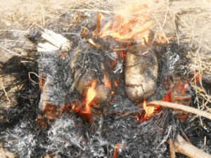 Thực ra, món gà “ăn mày” có nguồn gốc từ Trung Quốc, gắn liền với một câu chuyện thú vị. Tương truyền, một gã ăn mày vì quá đói khát đã liều mình ăn trộm con gà của nhà dân. Khi đang loay hoay nhóm lửa để làm thịt thì bất ngờ bị phát hiện. Trong lúc luống cuống, hắn vội bọc gà trong lá, phủ đất sét bên ngoài rồi quẳng vào đống lửa để che giấu. Không ngờ, chính cách làm tưởng như tạm bợ đó lại tạo nên một món ăn thơm lừng, thịt gà mềm ngọt, đậm đà. Cái tên “gà ăn mày” cũng ra đời từ đó, gợi nhớ đến sự nghèo khó, tạm bợ trong câu chuyện xưa.