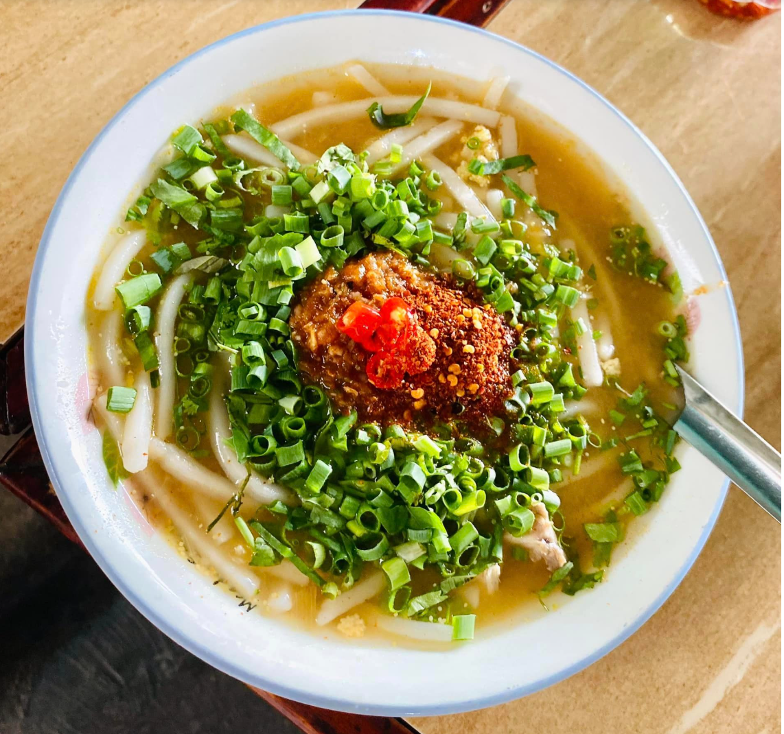 Trong đó, bánh canh được làm từ bột gạo cán mỏng, thái thành từng sợi nhỏ, dài trông giống như những thanh tre của vạt giường.
