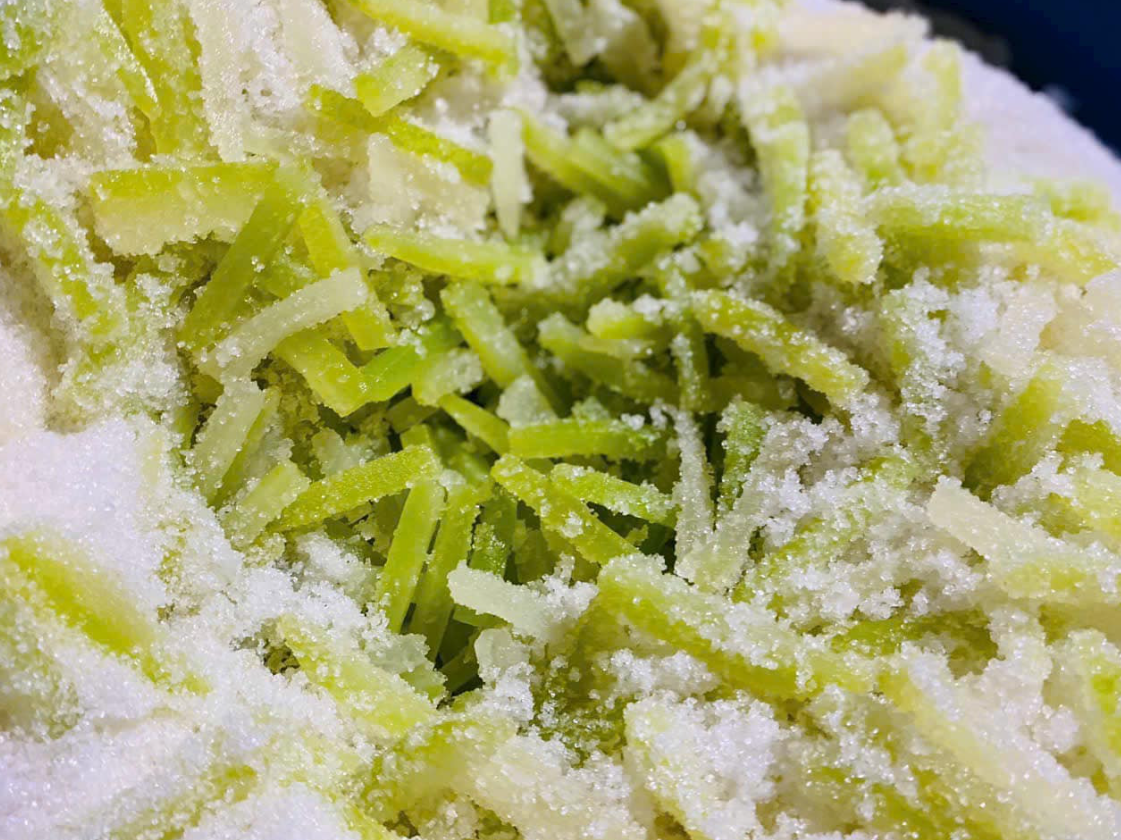 Một trong những món được du khách rất ưa thích tại Ba Bể là nộm bí xanh thơm. Theo chị Mai, bí xanh được bỏ vỏ, rửa sạch rồi nạo sợi. Những sợi bí sẽ phải ngâm qua nước muối loãng rồi bóp kỹ để khử mùi hăng của bí khi còn sống.