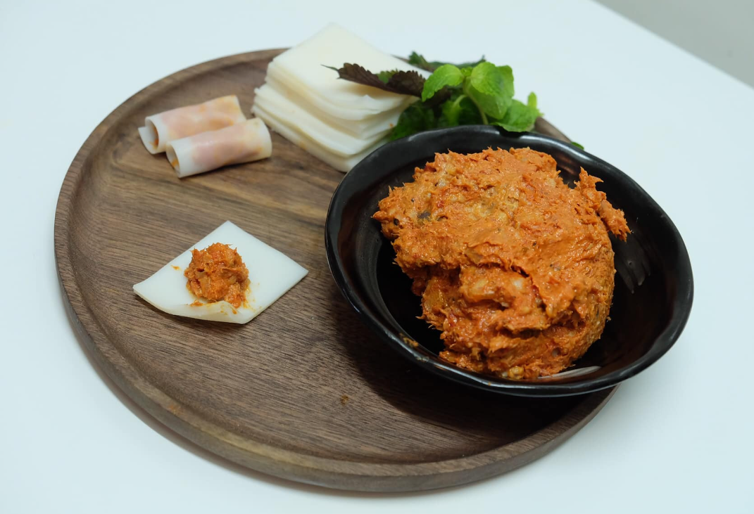 “Nhân được xay nhuyễn nhưng khi ăn vẫn cảm nhận được rõ hương vị của tôm và không còn mùi tanh, kết hợp vị béo ngậy của thịt ba chỉ càng thêm hấp dẫn”, chị Thảo nói.