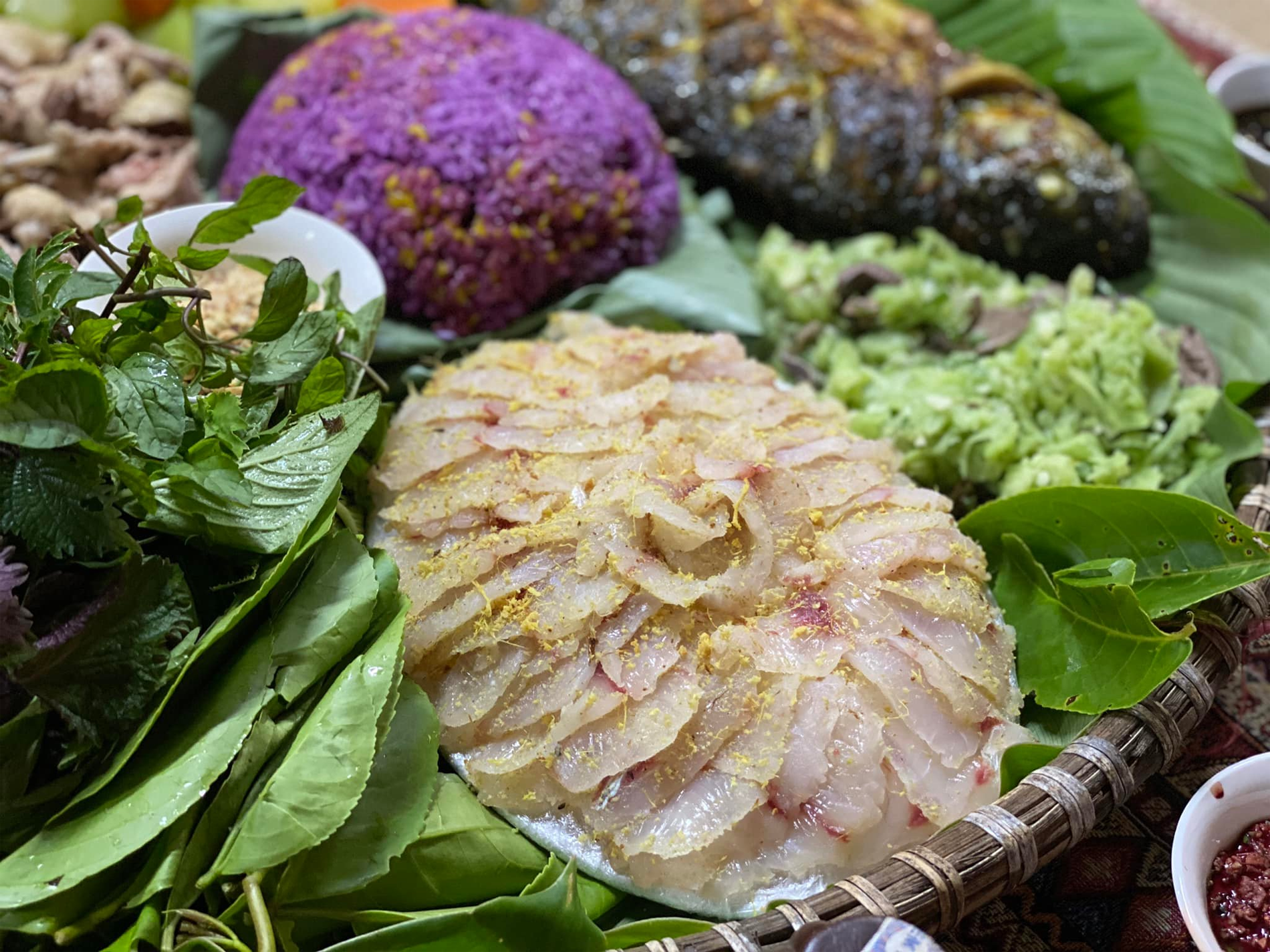 Với món gỏi, anh cảm nhận được vị thanh mát của thịt cá, hòa quyện với vị bùi thơm từ xương băm, chút béo ngậy của chẻo và thêm vị chua, cay từ chanh ớt và mùi thơm của các loại rau rừng.