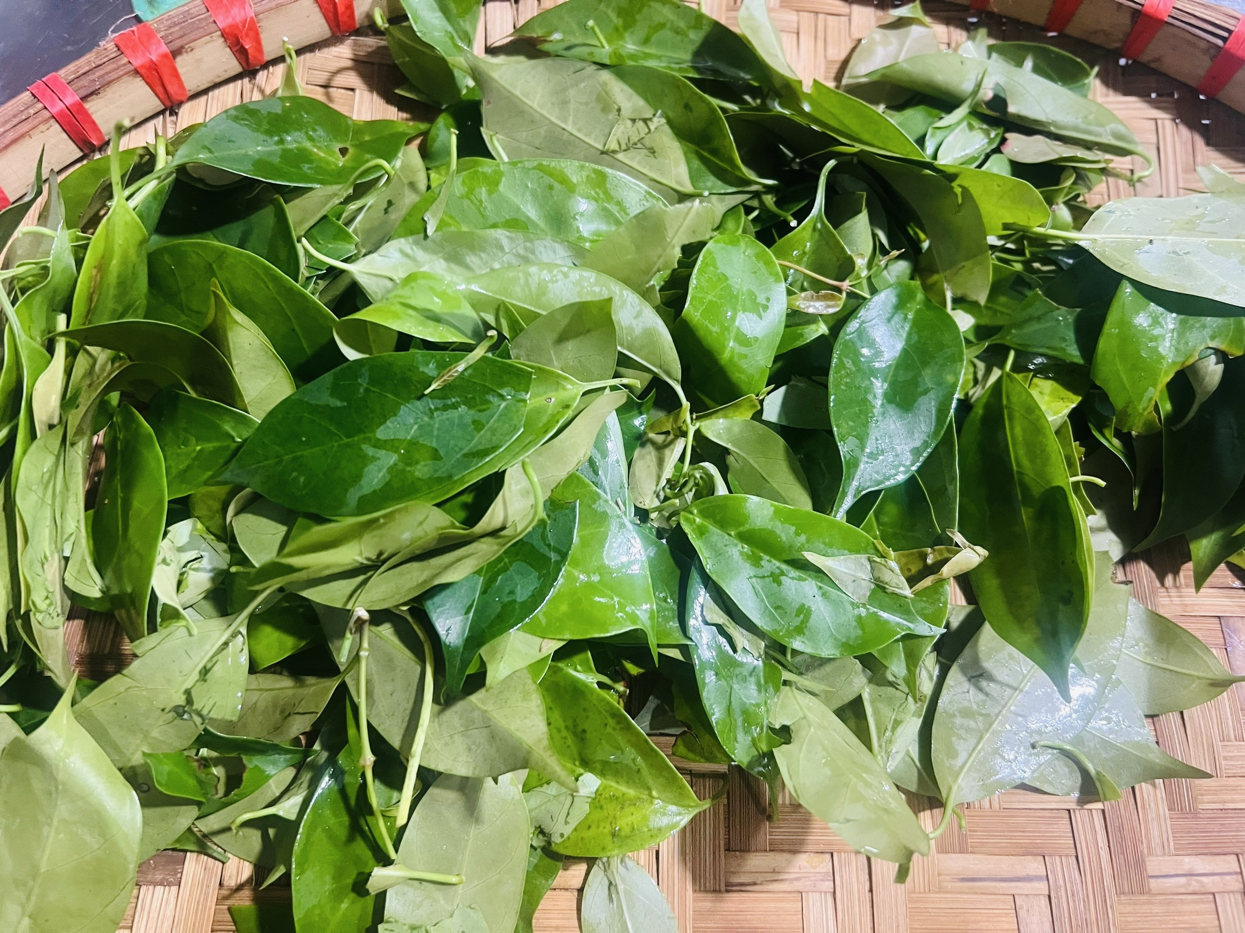 Để có món ăn ngon, việc chọn nguyên liệu đúng “chuẩn” là vô cùng quan trọng. Lá lồm được hái từ rừng về phải tươi xanh, độ già vừa phải thì sẽ đủ độ chua và không bị gắt hoặc đắng.