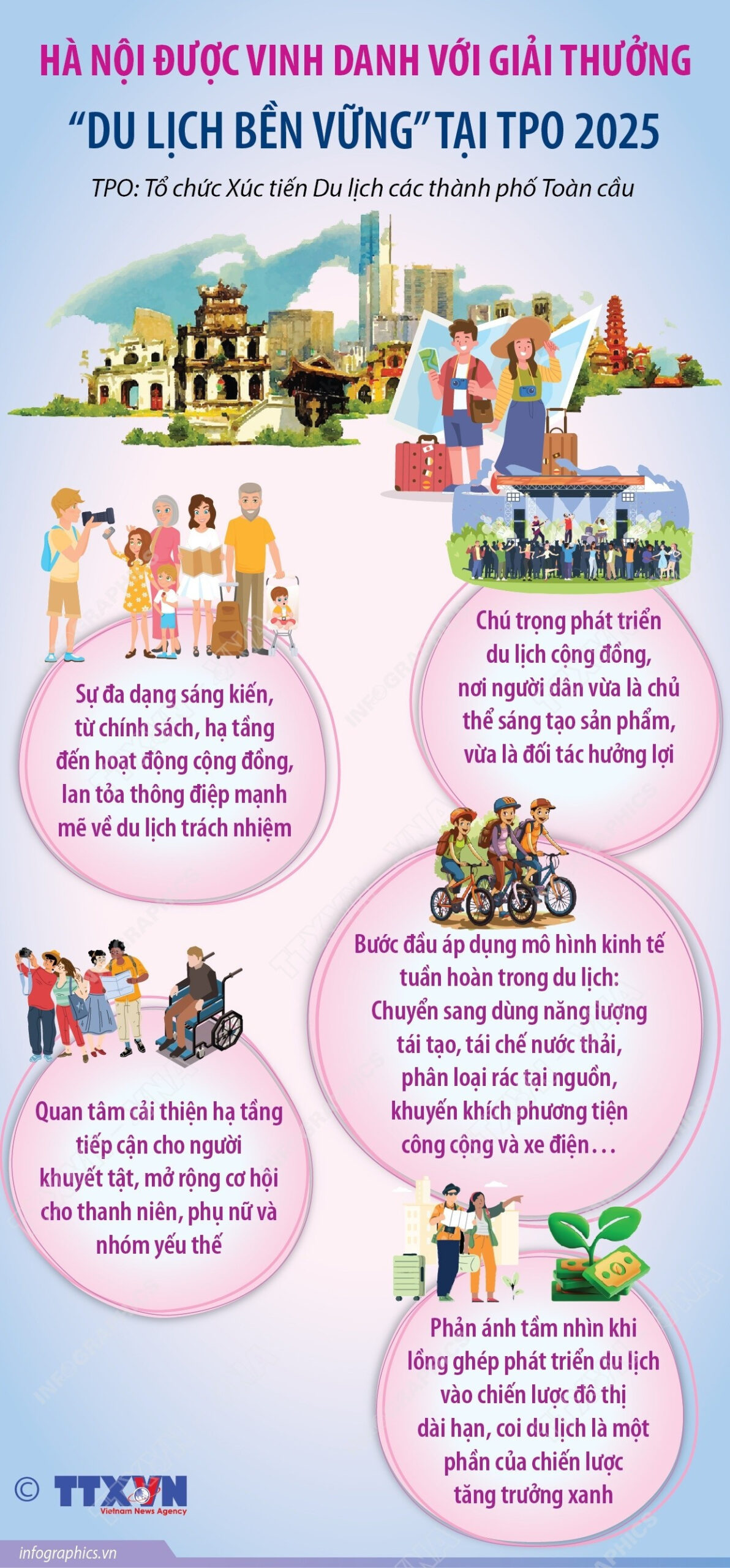 Đây không chỉ là phần thưởng cho nỗ lực bền bỉ của ngành Du lịch Thủ đô, mà còn là minh chứng cho tầm nhìn phát triển hài hòa giữa bảo tồn môi trường, phát huy giá trị văn hóa và thúc đẩy tăng trưởng kinh tế./.