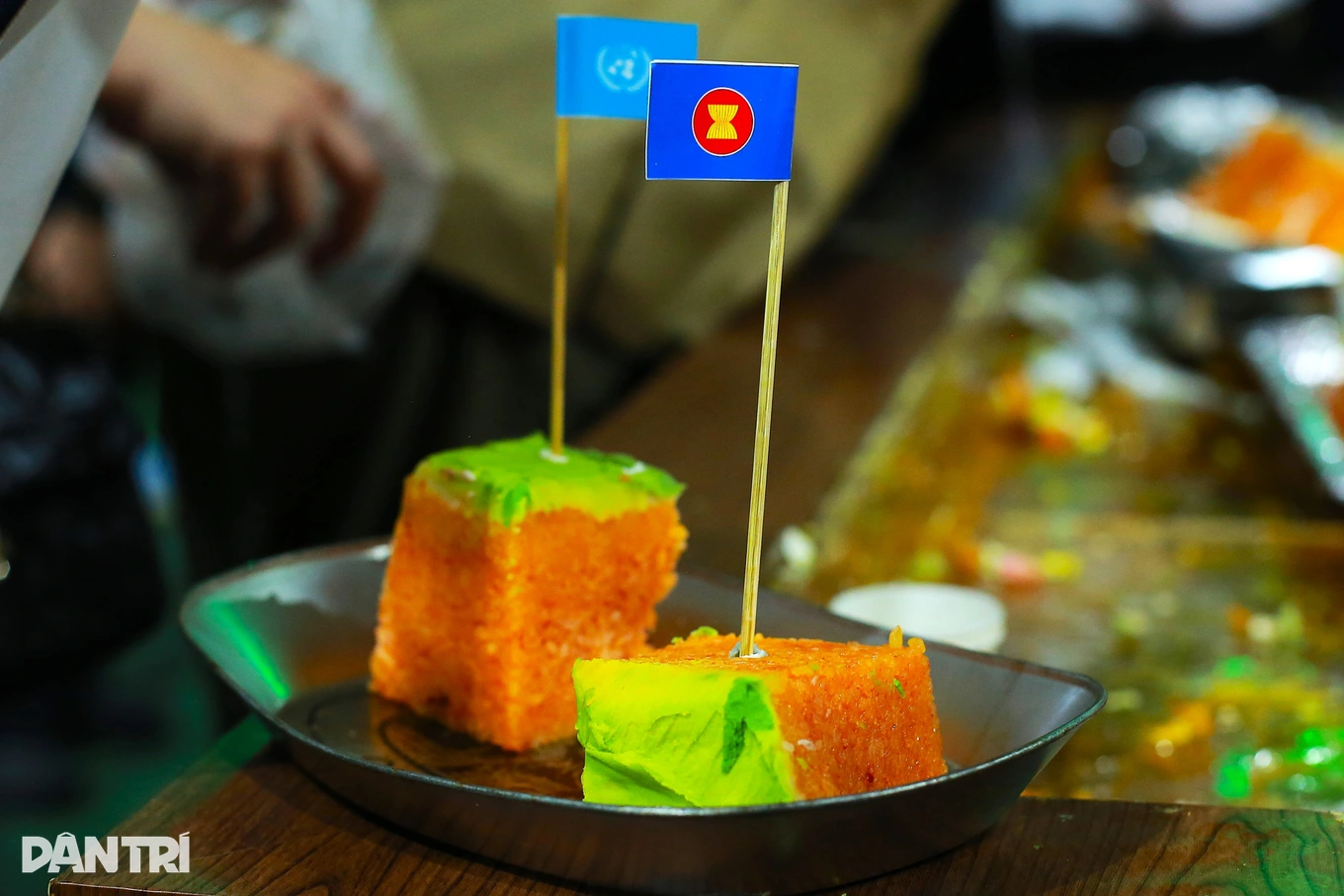 Mô hình Trung tâm Hội chợ Triển lãm Việt Nam từ 510kg xôi và đậu vừa đảm bảo chất lượng thẩm mỹ, vừa bảo đảm an toàn vệ sinh thực phẩm. Các phần xôi sau đó được chia cho nhân dân và khách tham quan thưởng thức.