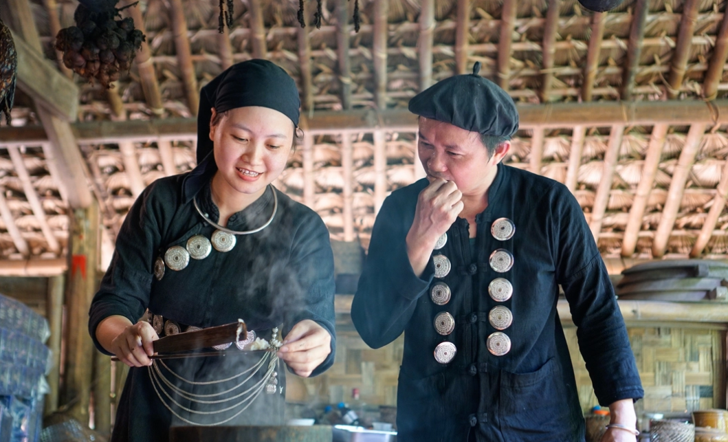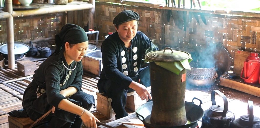 Bên bếp lửa trên hiên nhà sàn cổ ở làng Thái Hải (Thái Nguyên), gia đình chị Linh quây quần cùng nhau làm mâm cơm truyền thống của người Tày. Cá chép om dấm bỗng, thịt lợn bản xào măng chua… nhiều món ngon được gia đình làm để đãi khách, đặc biệt nhất là xôi trám đen – món ăn chỉ có vào mùa thu.