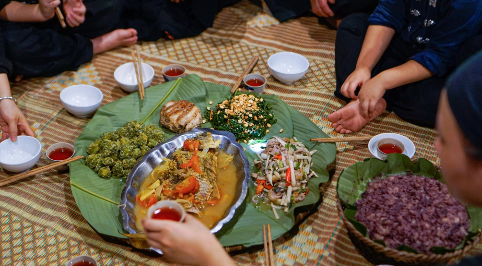 Lần đầu đến với làng Thái Hải, chị Linh Trang (Hà Nội) ấn tượng với mâm cỗ của làng Thái Hải, từ nguyên liệu sạch tại bản làng đến cách chế biến, cách dân làng kể câu chuyện văn hóa qua từng món ăn.