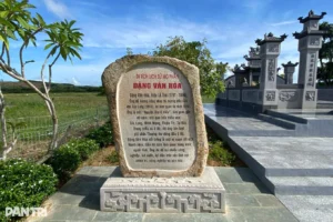 Bia đá ghi chép thân thế và sự nghiệp danh nhân Đặng Văn Hòa (Ảnh: Vi Thảo).