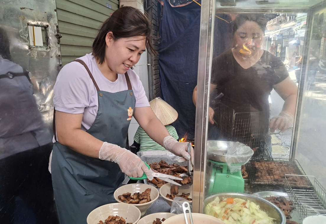 Dù không phải quán bún chả Hà Nội nổi tiếng trên truyền thông, nhưng quán của gia đình chị Vân Anh lúc nào cũng đông khách, thậm chí nhiều người sẵn sàng xếp hàng 15-20 phút để được thưởng thức.