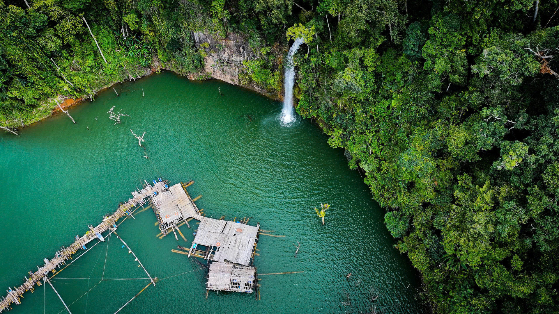 Lênh đênh trên con thuyền nhỏ giữa mặt hồ, du khách có thể ngắm nhìn những khu rừng nguyên sinh xanh mướt, xa xa là bản làng bình yên của người Xơ Đăng ẩn hiện trong sương và dòng thác tung bọt nước trắng xóa.
