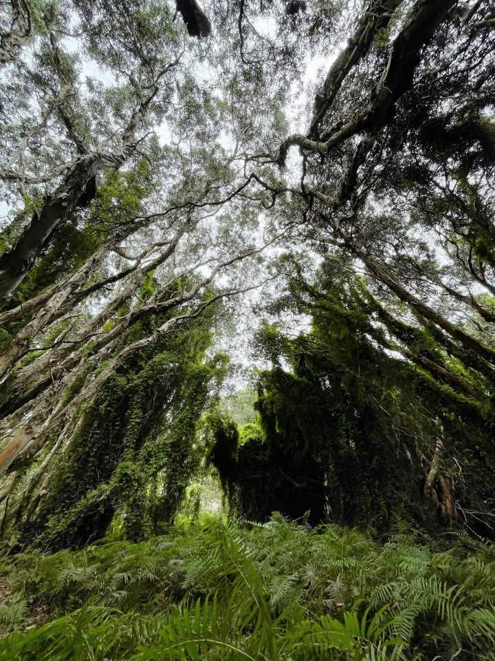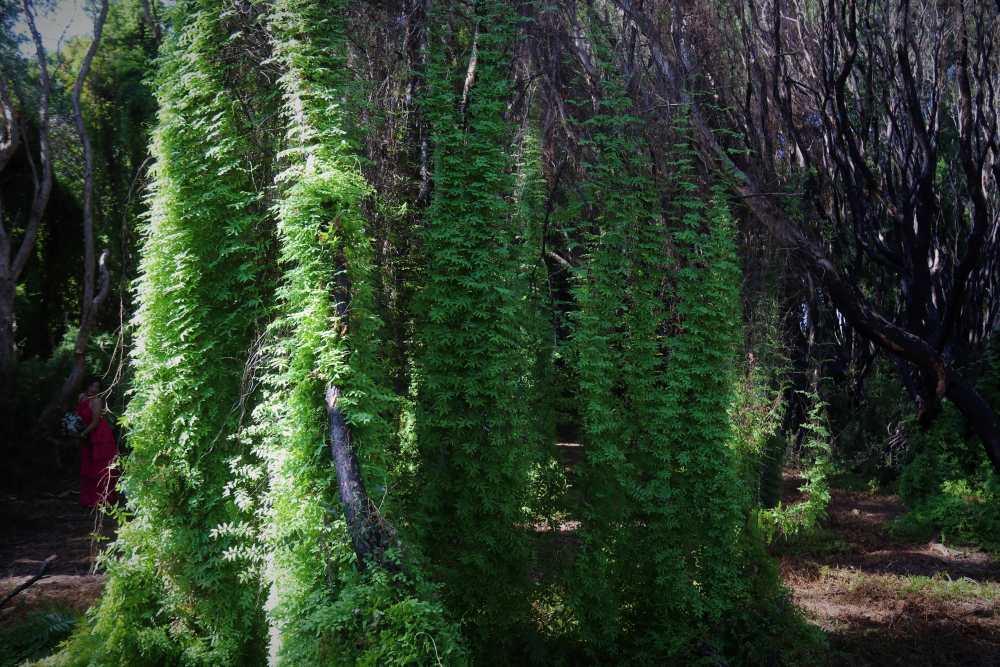Theo người dân địa phương, khu vườn này do một hộ dân quản lý nhiều năm. Nơi đây có những cây tràm bản địa, trước kia từng bị phát quang và đốt thực bì. Sau những cơn mưa, dương xỉ mọc dày đặc, phủ kín cả những thân tràm cháy đen, xen lẫn các cây cổ thụ còn sống, tạo nên khung cảnh vừa kỳ vĩ vừa ma mị. Bước chân vào khu rừng, nhiều người lập tức bị cuốn hút bởi vẻ đẹp xanh mát, sống động của thiên nhiên. Ảnh: Phương LinhKhu vườn này được một số bạn trẻ yêu nhiếp ảnh và đam mê khám phá ở địa phương phát hiện từ tháng 6.2025. Ảnh: Gia Minh