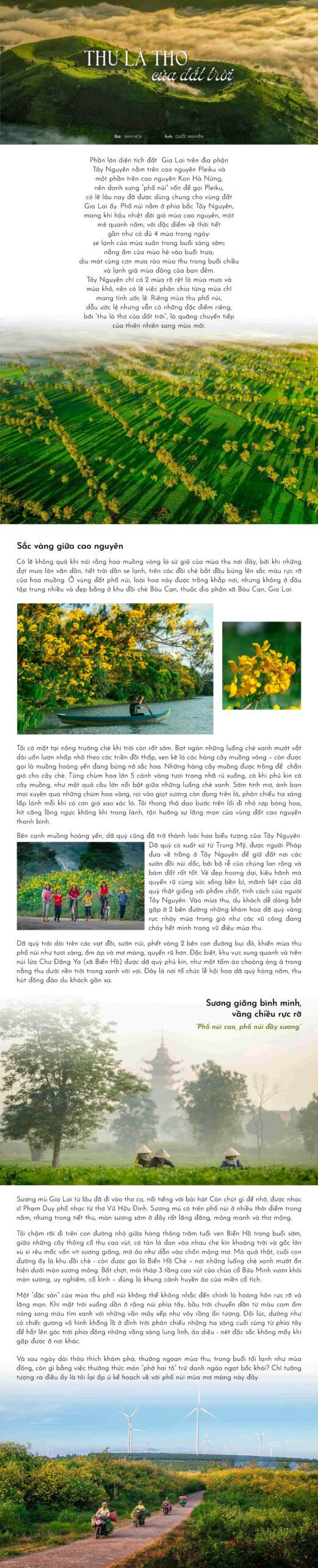 Khi mùa thu về trên vùng đất Tây Nguyên huyền bí, Gia Lai như một bức tranh thơ sống động với cánh đồng vàng óng ả hoa dã quỳ, những đồi cà phê chín mọng và sương mù bao phủ Pleiku mơ màng. Dưới bàn tay kỳ diệu của thiên nhiên, gió heo may mang theo hương đất trời, đánh thức mọi giác quan giữa mênh mông cao nguyên bazan đỏ au.
