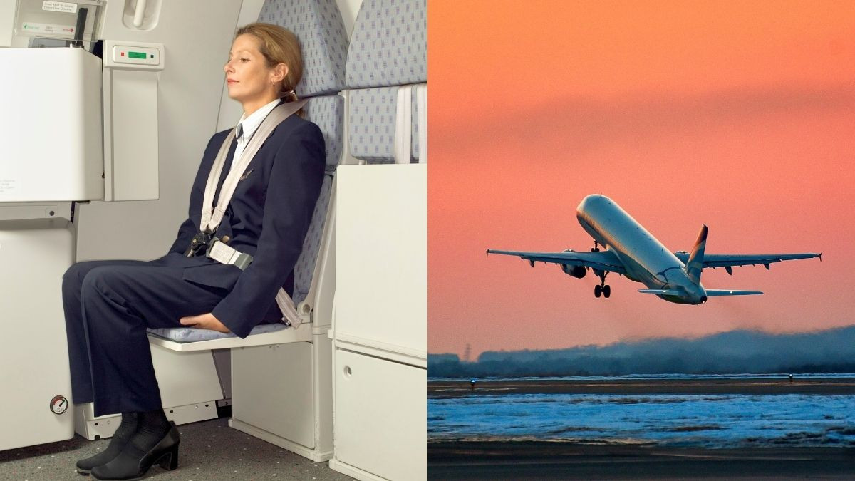 Trên các chuyến bay, nhiều hành khách thắc mắc vì sao tiếp viên ngồi thẳng lưng, đặt hai tay dưới đùi khi máy bay cất và hạ cánh.