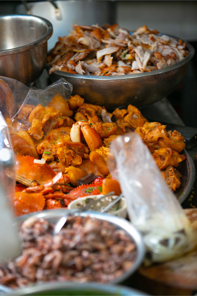 Hãy lấy ví dụ về các món nước đi, bởi chúng ta vẫn quen với việc ăn đồ nước vào buổi sáng. Với nhiều cửa hàng nổi tiếng, một ngày làm việc của họ rất có thể bắt đầu từ 4-5h. Phở, bún, miến, hủ tiếu… linh hồn của chúng là nồi nước dùng, vậy nên người nấu luôn là những kẻ cực đoan nhất trong việc chuẩn bị cho nồi nước dùng của mình được ở trong trạng thái hoàn hảo nhất khi bắt đầu mở cửa tiệm. Những khúc xương ngon phải được lựa từ chợ và ninh tối thiểu 2-3 tiếng để tiết ra hết những tinh túy và biến nồi nước trở thành một thứ có thể gây nghiện. Gà lại là một phương pháp khác khi không chỉ cần luộc chín tới, mà còn phải ngâm đủ thời gian để thịt gà vừa chạm đến độ mềm và mọng, trong khi vẫn giữ được sự dai giòn của phần da mỡ màng. Tôi luôn ngưỡng mộ tài luộc gà tài tình của những tiệm nổi tiếng nhất Hà Nội bây giờ như phở gà Châm hay phở gà Trà ở chợ Hàng Bè. Thậm chí, có thể coi họ là những nghệ nhân chỉ riêng trong lĩnh vực này, bởi việc cho ra đời những miếng gà hoàn hảo như vậy hàng ngày chỉ có thể đến từ kinh nghiệm và một giác quan đặc biệt của người nấu bếp.
